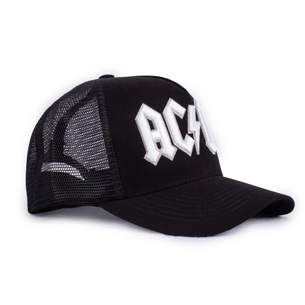 Boné Trucker ACDC Back In Black Oficial. Bordado premium, modelo trucker com aba curvada, tela traseira e ajuste confortável. Estilo rock’n’roll autêntico para fãs da banda. Perfeito para shows, rolês e looks urbanos com personalidade e atitude.