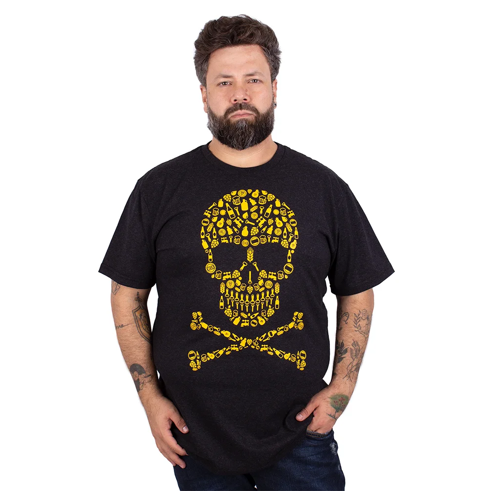 Uma camiseta de Caveira já é animal, agora uma camiseta de caveira feita de elementos relacionados a Cerveja, ai já é demais! Sucesso!