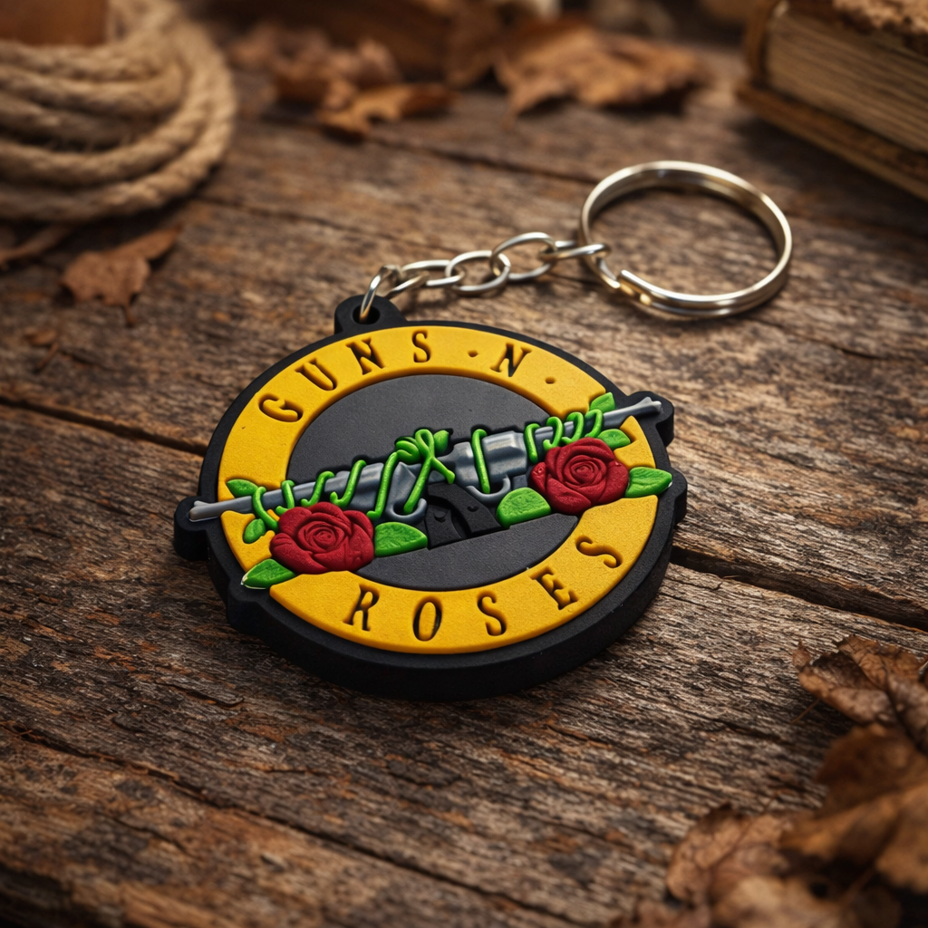 O Chaveiro Guns N' Roses Emborrachado é o acessório ideal para fãs da banda que querem carregar o símbolo do rock por onde forem. Produzido em material emborrachado de alta qualidade, traz o icônico logo com as rosas em alto-relevo, oferecendo resistência, estilo e excelente acabamento para uso diário.