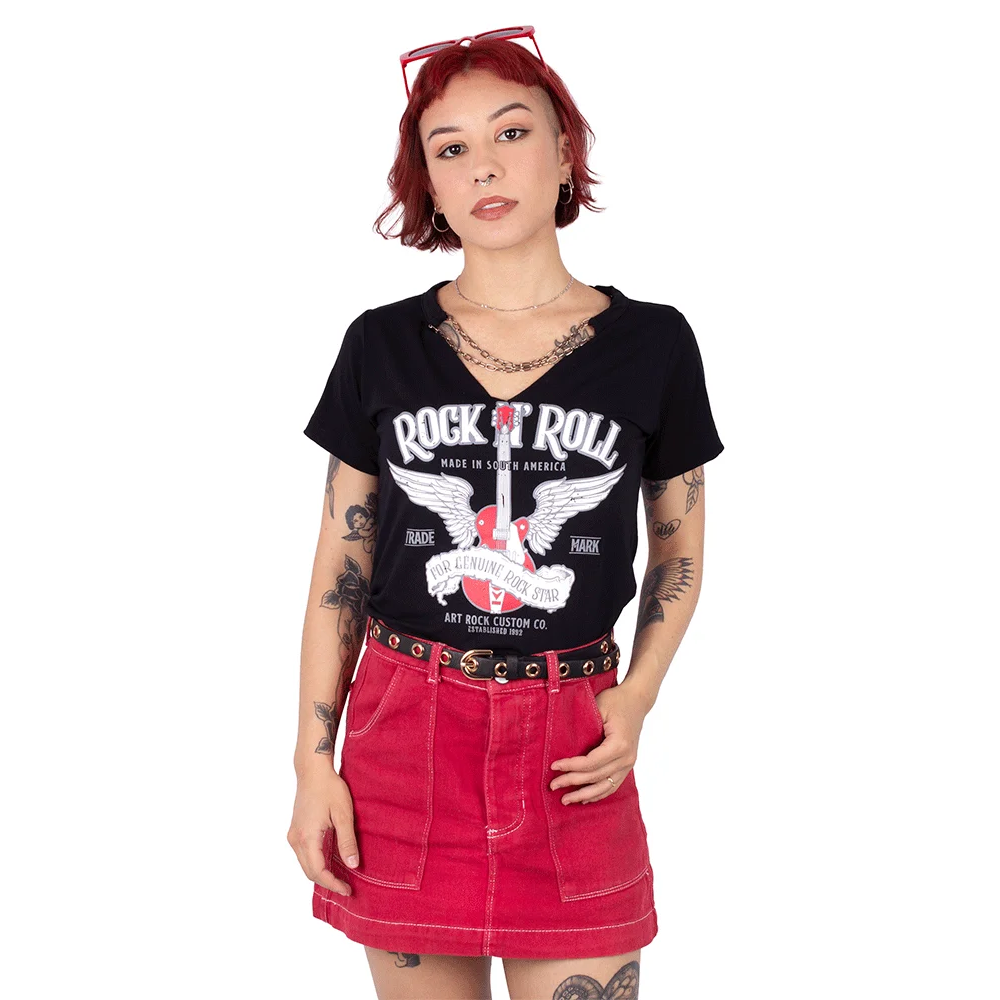 A Blusa Corrente da ArtRock é confeccionada em tecido macio, de excelente caimento, a base de viscose. Possui decote V cut out com detalhe em corrente e mangas curtas. Ideal para um look Rock n' Roll cheio de atitude e conforto!