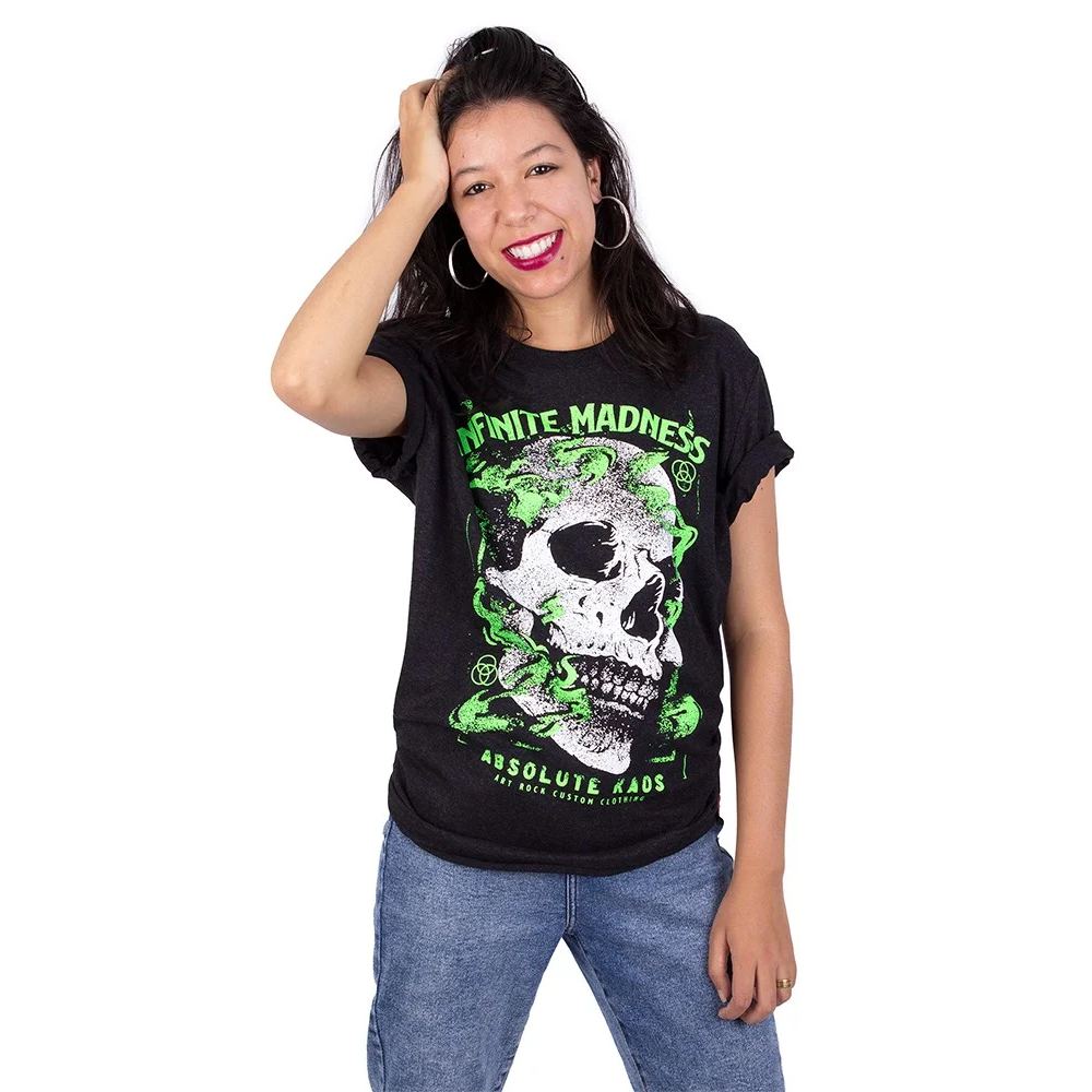 Estampas de caveira são sempre o acerto inquestinável que você pode ter em seu armário. A camiseta é cheia de estilo para diversas ocasiões. Nunca hesite em usá-las, mas principalmente, nunca hesite em viver momentos incríveis, suas loucuras infinitas!