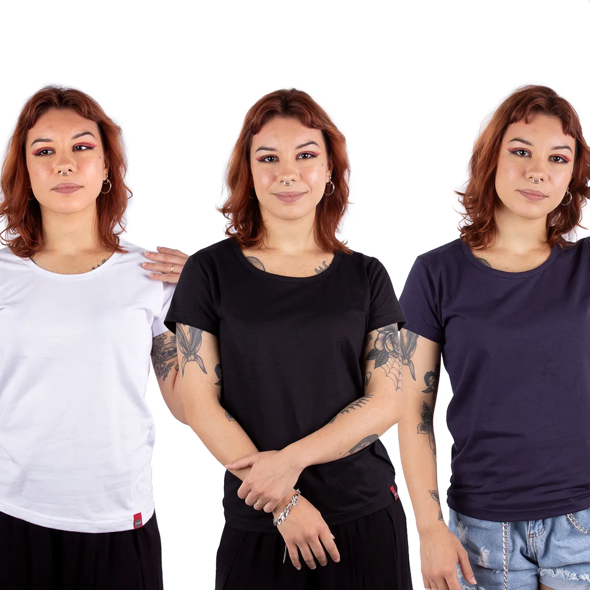 Pensando nisso, criamos o Kit com 3 Camisetas Femininas Básicas Art Rock: peças essenciais, confortáveis e fáceis de combinar para qualquer ocasião.