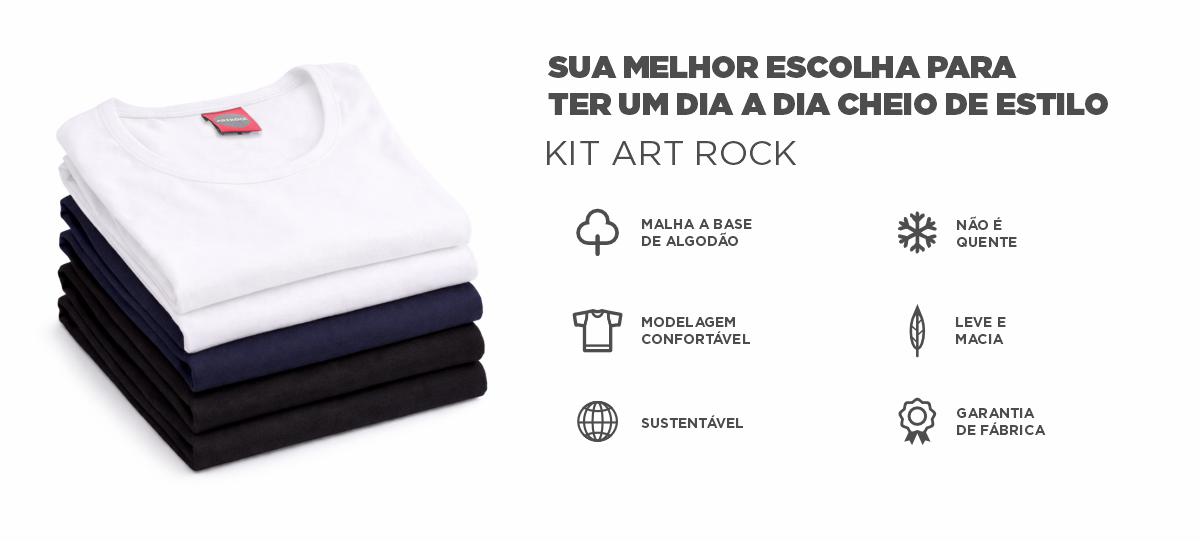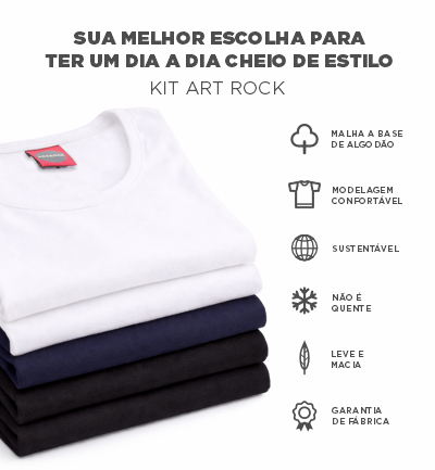 Nossas camisetas são fabricadas de forma artesanal e com a atenção voltada aos detalhes. Utilizamos tecidos de excelente qualidade e costuras com reforços que garantem conforto e durabilidade. Conheça toda a coleção Art Rock.